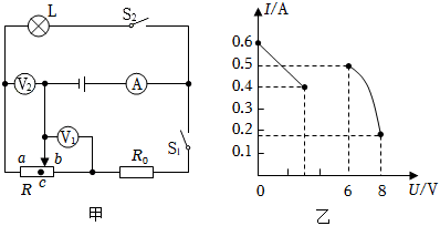 19.如图甲所示,电源电压不变,滑动变阻器R标有“50Ω,1A”字样,电流表量程为“0~0.6A”,电压表V1和V2的量程分别为“0~3V”和“0~15V”,小灯泡L的额定电流为0.5A。只闭合开关S1,在保证电路安全的前提下,将滑动变阻器的滑片从b端最大范围内滑到c点;只闭合开关S2,将滑片从c点向左最大范围内移到某点,得到如图乙所示的两只电压表和电流表示数关系的图像。则电源电压为 V,小灯泡的额定功率为 W,定值电阻R0的阻值为 Ω。