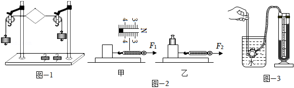 (2)如图-2是“探究影响滑动摩擦力大小的因素“的实验装置,其中甲、乙都是粗糙程度相同的木板表面。比较甲、乙两次实验,是为了探究滑动摩擦力的大小与 的关系。若将甲图中的拉力增大到4.8N,使木块运动的速度加快,则木块所受的滑动摩擦力为 N。