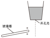 17.如图所示塑料杯中盛有适量水,在杯底开一小孔,水能竖直流下(图中虚线所示),一带电玻璃棒靠近细小水流(始终不接触),请用实线画出此时水流的路径。