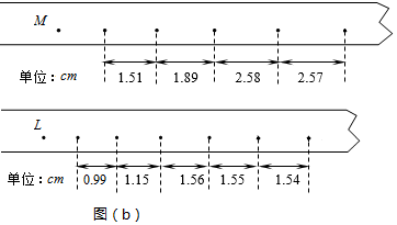 (2)图(b)中M和L纸带是分别把弹簧压缩到不同位置后所得到的实际打点结果。打点计时器所用交流电的频率为50Hz,由M纸带所给的数据,可求出在该纸带对应的试验中物块脱离弹簧时的速度为 m/s。比较两纸带可知 (填“M”或“L“)纸带对应的试验中弹簧被压缩后的弹性势能大。