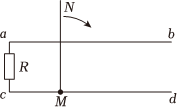 10.平行金属导轨ab、cd相距L,固定在同一竖直平面内,左端通过导线连接一阻值为R的定值电阻,质量为m、长为2L的轻质均匀金属杆MN紧贴导轨竖直放置,金属杆M端固定在导轨cd上,且可以绕M点在竖直平面内转动,整个装置处于与导轨平面垂直、磁感应强度大小为B的匀强磁场中。初始时金属杆竖直,在轻微扰动下轻杆由静止开始倾倒,N端线速度一直增大,到达水平位置时金属杆N端的线速度大小为v,导轨足够长,导轨、金属杆的电阻不计。已知质量为m0、长度为L0的均匀直杆绕一端转动时动能与角速度的关系为。重力加速度为g。关于金属杆由竖直第一次转到水平位置的过程,不计空气阻力,下列说法正确的是( )Ek=16m0L20ω2组卷:107引用:3难度:0.4