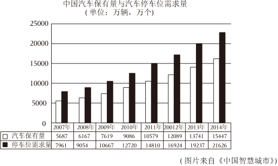 A.根据材料一中国汽车保有量与汽车停车位需求量的数据,我们可以看出我国停车场的供给缺口很大。