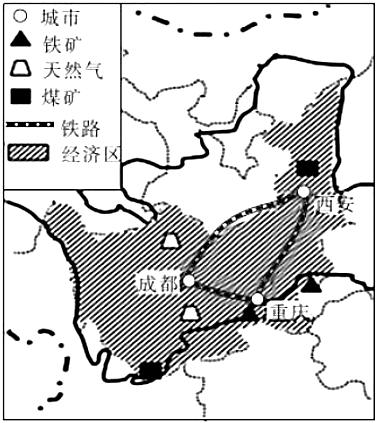 2.“西三角”经济区包括陕西省、四川省和重庆市的61个城市,面积约为37.78万平方千米。读“西三角”经济圈区域图,完成4~5题。