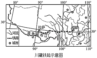 13.正在修建的川藏铁路起于四川省成都市,向西穿越山高谷深的横断山区进入西藏,经藏南至终点拉萨。读川藏铁路示意图,回答8~9小题。