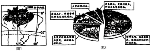 1.热带雨林有“地球之肺”的类巷。如图1示意巴西热带雨林分布,图2示意亚马孙热带雨林的开发,读图完成18~21题。