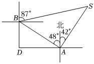 23.如图,在小岛A处测得北偏西48°的方位上有一小岛B,并测得其北偏东42°方位上有一轮船,同时在小岛B处测得轮船S在其北偏东87°方位上,已知小岛A到小岛B所在的东西方向的距离AD是20海里,求小岛B到轮船S之间的距离BS.(精确到1海里)(参考答案:sin48°≈0.74,cos48°≈0.67,tan48°≈1.11)组卷:65引用:1难度:0.4 -
