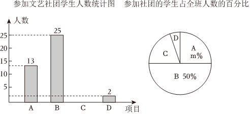 (3)求出参加书法社团的学生人数占全班总人数的百分比;