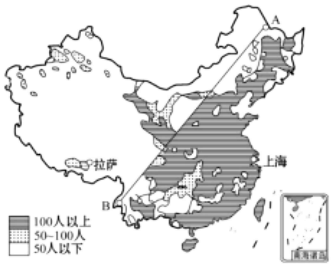7.如图是我国人口分布图,AB是我国人口地理界线,读图完成11~12题。