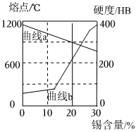 (1)用铜矿石与锡矿石冶铜,可得到硬度大于铜的铜锡合金。铜锡合金的熔点和硬度随其中锡含量的变化如图所示。图中表示熔点的曲线是(填“a”或“b”)。铜锡合金属于(填“金属”或“合成”)材料。
