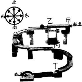。| A.垫高甲的位置 | B.垫高丁的位置 | C.再多设置2个弯道 |