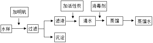 (1)取水后加入明矾的作用是.
