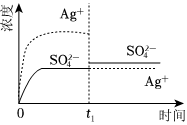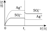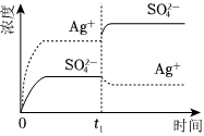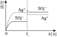 已知Ag2SO4的Ksp 为2.0×10-3,将适量Ag2SO4固体溶于100mL水中至刚好饱和,该过程中Ag+和SO2-3浓度随时间变化关系如图(饱和Ag2SO4溶液中c(Ag+)=0.034mol•L-1)。若t1时刻在上述体系中加入100mL0.020mol•L-1 Na2SO4 溶液,下列示意图中,能正确表示t1时刻后Ag+和SO2-4浓度随时间变化关系的是( )