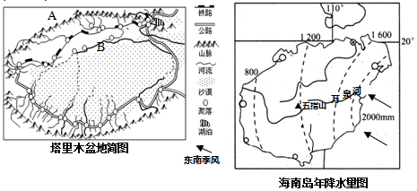 (1)塔里木盆地位于A山脉以南,(自然景观)广布.海南岛年降水量的空间分布规律是,其形成的主要原因是.