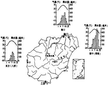 (1)依据图中气候资料图分析海南的纬度位置特点是。