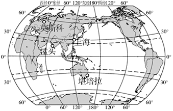 经纬网是我们在地球上准确定位地理事物的依据。下图是上海、孟买、莫斯科、堪培拉四城市经纬度位置示意图,读图,完成:四地所在的纬线圈长度最长的是( )