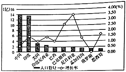 读部分国家人口统计图,完成21题。如图中,人口增长速度最快和最慢的一组国家是( )