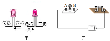 3.如图甲中发光二极管具有向导电性;如图乙中的电路,电灯中的电流方向是;形成电流的电子移动方向是。(后两空均选填“A到B”或“B到A”)
