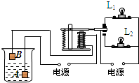 (2)根据这一结论,他设计了如图乙所示的温度报警器,工作原理为:当温度逐渐升高时,磁铁的 磁性磁性减弱直至消失,无法 吸引吸引(填“排斥”或“吸引”)弹簧开关,弹簧恢复原状,电路接通,电铃报警。