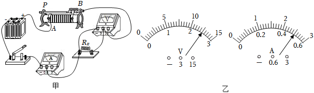 (1)按图甲连接电路,闭合开关,调节滑动变阻器滑片后,电流表示数为0.3A,此时电压表的示数如图乙所示,则定值电阻Rx的阻值为 Ω。