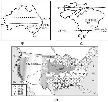 (2)美国农业高度发达,丙图体现了美国农业的显著特点是地区专门化地区专门化。