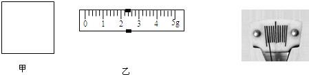(1)他首先用天平测出一空烧杯的质量为50g,接着从冰箱里取出一正方体冰块,冰块截面如图甲(1:1大小)所示,请根据图形测出该冰块的边长为cm.小明将冰块放入烧杯,在天平右盘增加了5g的砝码,再将游码移至如图8乙所示位置时天平平衡,该冰块的质量为g,小明算出冰块的密度为g/cm3。