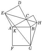 如图所示,在Rt△ABC中,∠ACB=90°,以其三边为边分别向外作正方形,连接EH,GH,连接EG交AB于点K,当∠EHG=90°时,则EKKG的值为( )