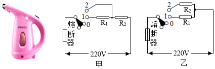2.如图所示为一款利用高温水蒸气熨烫衣服的便携式挂烫机,它的正常工作电压为220V,水箱装水最多0.5kg,加热功率有大、小两个挡位。设计师最初设计的内部电路有如图所示的甲、乙两种接法,其中电热丝R1=56Ω,R2=44Ω。