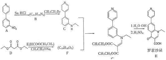 类似于苯环性质。罗素沙星就是其中一种药物,如图是合成罗素沙星的路线: