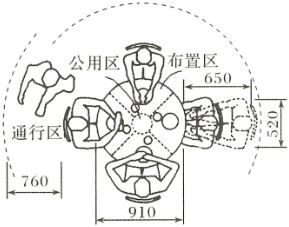 如图所示是四人用小圆桌、椅的设计及摆放尺寸,从人机关系角度分析,仅需要考虑人的静态尺寸的是( )