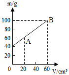 用容器盛某种液体,测得液体体积V与液体和容器总质量m的关系如图线段AB所示,请你观察图象,根据图象可知( )