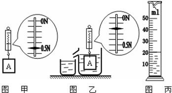 2.弹簧测力计下挂一个物体A,静止时弹簧测力计的示数如图甲所示。A浸没在装满某种液体的溢水杯中静止时,弹簧测力计的示数如图乙所示。把从溢水杯中溢出的液体,倒入量筒中,如图丙所示。由此可知,A的密度为