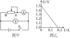 为了测量一节干电池的电动势和内阻,某实验小组按图甲所示的电路图连好实验电路,合上开关,电流表和电压表的读数正常,当将滑动变阻器的滑片由A端向B端逐渐滑动时,发现电流表的示数逐渐增大,而电压表的示数接近1.5V且几乎不变,直到当滑片滑至临近B端时电压表的示数急剧变化,这种情况很难读出电压数值分布均匀的几组不同的电流值、电压值,出现上述情况的原因是滑动变阻器阻值太大,有效使用的部分短滑动变阻器阻值太大,有效使用的部分短.改进方法是选择阻值更小的滑动变阻器选择阻值更小的滑动变阻器.改进后,测出几组电流、电压的数值,并画出如图乙所示的图象,由图象可知,这个电池的电动势为E=1.481.48V,内阻r=2.42.4Ω.