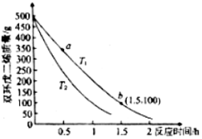 ②T1温度下,500g的双环戊二烯发生解聚反应,双环戊二烯质量与反应时间的关系如图所示: