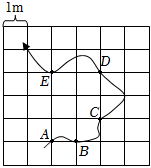 如图所示,物体沿曲线ABCDE运动,在AB、ABC、ABCD、ABCDE四段轨迹所用的时间分别是1s、2s、3s、4s.已知方格的边长为1m。下列说法正确的是( )