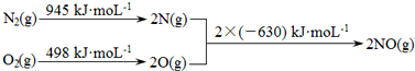 ①写出该反应的热化学方程式:N2(g)+O2(g)=2NO(g)△H=+183kJ?moL-1N2(g)+O2(g)=2NO(g)△H=+183kJ?moL-1.