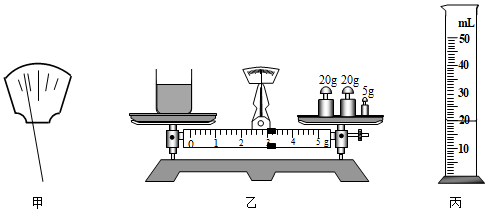 (3)在20g的玻璃杯中装上适量的蜂蜜并将该玻璃杯放在调节好的天平的左盘中,当天平水平平衡时,右盘中的砝码以及游码在标尺上的位置如图乙所示,则蜂蜜的质量是g;