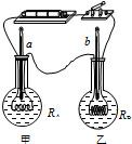 3.小明在探究电流通过导体产生的热量与哪些因素有关时,把两段金属丝A、B(已知A、B两金属丝的电阻分别为RA、RB,且RA<RB)串联后,分别放在如图19所示的两个完全相同的烧瓶中并接入电路,在烧瓶中加入质量、初温均相同的煤油,再分别插入相同的温度计a、b.闭合开关通电一定时间。此方案可探究电流通过导体产生的热量与大小的关系。请你应用所学知识推断实验过程中(“甲”或“乙”)。发布:2026/1/31 1:30:1组卷:11引用:3难度:0.7
