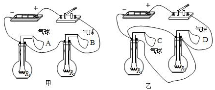 2.为了探究电流产生的热量跟什么因素有关,小阳设计了如图所示的甲、乙两装置。他将两段阻值不同的电阻丝(R1<R2)分别封闭在两个完全相同的烧杯中,并通过短玻璃管与相同的气球相连,两次实验电源电压不变。