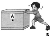 如图所示,小聪推一个较重的木箱没有推动,请你分别在A点和B点画出木箱和小聪所受摩擦力的示意图。