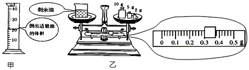 (5)如图乙所示,一个粗心的同学,把物体放在了右盘,砝码放在了左盘,则物体的质量烧杯和食用油的总质量/g 烧杯和剩余油的总质量/g 倒出油的质量/g 倒出油的体积/cm3 油的密度/