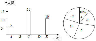 某兴趣班有A、B、C、D、E五个小组,如图是根据各小组人数分布绘制成的不完整统计图,则该班学生人数为 5050人.