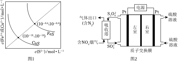 已知①常温下FeS、CuS的沉淀溶解平衡曲线如图1所示;