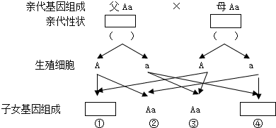 2.双眼皮和单眼皮是一对相对性状,双眼皮是显性性状,受基因(A)控制。单眼皮是隐性性状,受基因(a)控制。有一对夫妇,男性的基因组成是Aa,女性的基因组成是Aa,请分析回答下列问题: