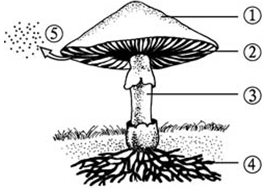 【答案】③;菌丝;②;菌褶;孢子;有机物;子实体