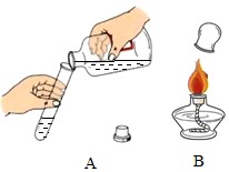 (1)如图A所示,手握细口瓶倾倒液体时,细口瓶标签的一面要向着向着(选填“背着”或“向着”)手心,细口瓶的塞子要倒放倒放(选填“倒放”或“正放”)在桌面上。