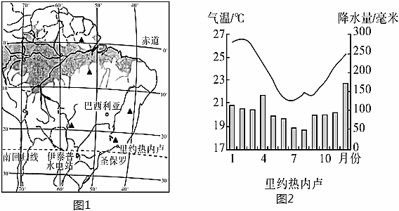 (2)受自然环境影响,巴西的农作物以 热带经济作物热带经济作物(填“粮食作物”或“热带经济作物”或“温带经济作物”)为主,甘蔗、柑橘等农产品的产量居世界首位,成为巴西重要的出口创汇产品。巴西工业城市萨尔瓦多主要发展汽车和石油工业,据图推断,影响该城市工业部门发展的主要自然因素是 石油等矿产资源丰富石油等矿产资源丰富。