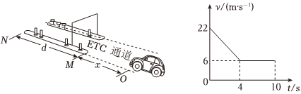如图为某高速公路出口的ETC通道示意图。一汽车驶入通道,到达O点的速度v