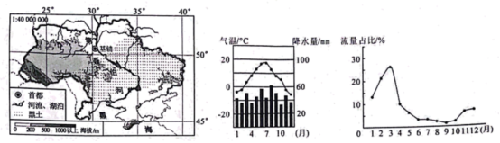 2.乌克兰素有“欧洲粮仓”之称,第聂伯河是境内第一大河。读乌克兰示意图和基辅气候资料,第聂伯河各月径流量占比示意图,完成下面小题。