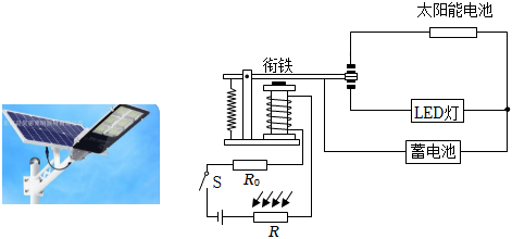 在很多道路边都安装有太阳能路灯,能够实现白天自动充电,夜晚自动给LED灯供电照明。若其自动控制电路如图所示,R