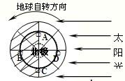 从北极的上空看到图中A、B、C、D四地中,处的晨线上的是 CC。如果图中D处是中国,则B处最有可能的是下列哪个国家 CC。